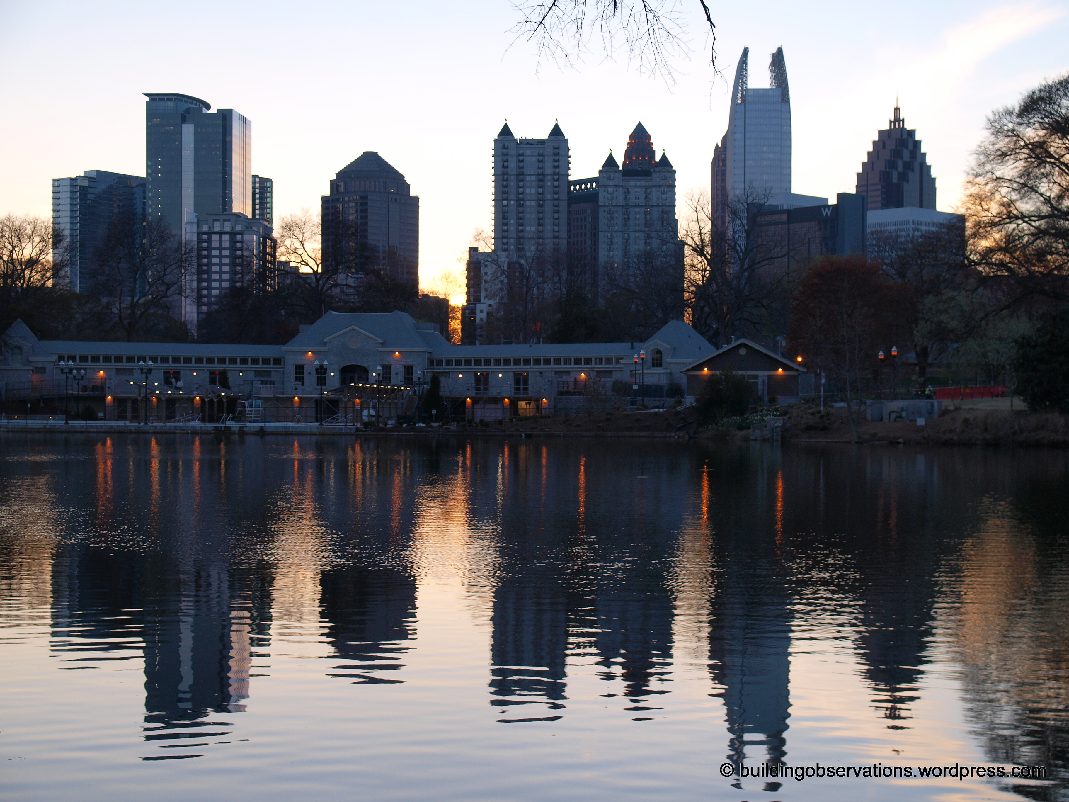 A view of the midtown skyline and sunset from within the Piedmont Park.