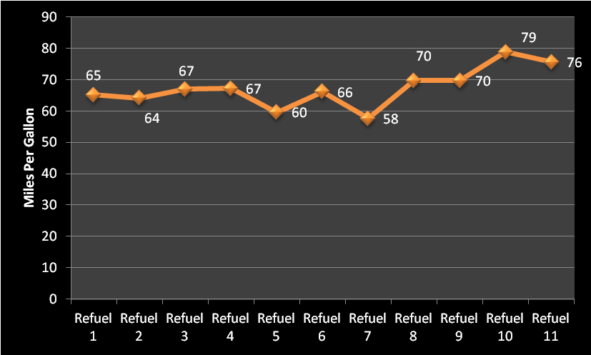 For me it is, see the miles per gallon I get, in the chart below. I use it mainly to commute to work and try and stick to the posted speed limits. I ride my Honda CBR 250R on a highway with a speed limit of 55 MPH.